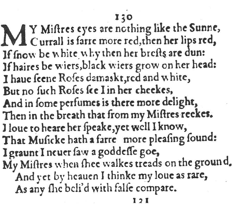 <l>My Mistres eyes are nothing like the Sunne,</l>